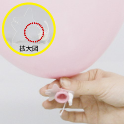 4.風船の先をクリップの溝に 引っかけます。